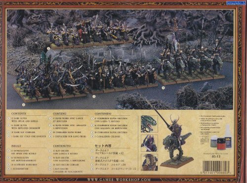 Dark Elf Elves Battalion Warhammer Fantasy Info This box contains 53 plastic models multi-parties, including: 12 Dark Elf Warriors with spear and shield, 16 Dark Elf Warriors with repeater crossbow, 20 Corsairs and 5 Knights Cold. Box of 48 20 mm square and five 25mm x 50mm bases. Miniatures come unpainted and unassembled in the original packaging. Books are in new condition. This is some reasons why you should buy Dark Elf Elves Battalion Warhammer Fantasy with us. -We have large inventories. -Reasonable price which cheaper rate than competitor. -Secure and easy payment. -We have more than 10 year experience in online market. You can trust us 100% If your don't want Dark Elf Elves Battalion Warhammer Fantasy, you can select other similar products in Feature Lenses topic. Purchase Dark Elf Elves Battalion Warhammer Fantasy